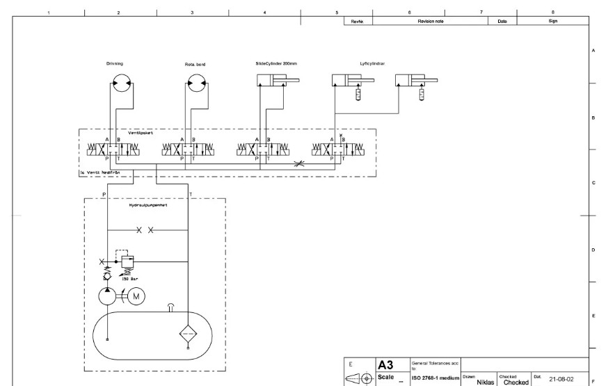 對於液壓(甚至氣動)公司來說,一個重要的需求是建立顯示解決方案運作方式及組裝方式的圖表。IRONCAD 透過其內建的完整 2D CAD 解決方案來滿足這一需求。作為使用者,您不需要單獨的 2D CAD 程式來解決此需求。IRONCAD 中的 2D 解決方案功能強大,可用於所有 2D 需求,包括原理圖繪製。它附帶現成的液壓和氣動符號庫。這些符號庫可以輕鬆補充使用者想要快速存取的更多符號。IRONCAD 的 2D 解決方案當然可以開啟現有檔案、編輯並建立 DWG 和 DXF 2D 格式的新檔案。