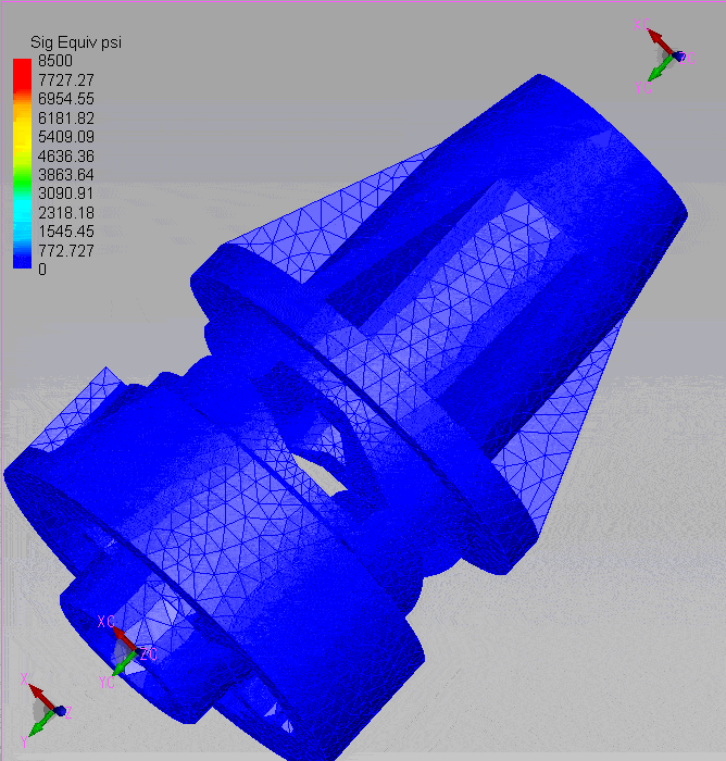 離合器工作過程模擬,可看到複雜應力分佈變化。