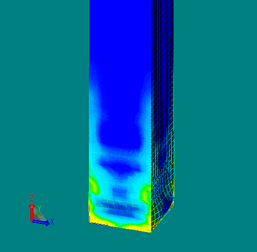 金屬棒以一定速度撞擊到硬墻上,金屬棒發生塑性變形,端部半徑增加而金屬棒長度減少。因為涉及塑性,這需要非線性材料功能計算。變形不大時的彈性區發生彈性變形,是線性材料性質。