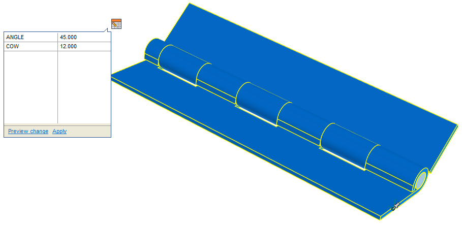 更快速存取參數 對於使用參數化模型的使用者,現在可以更輕鬆地存取直接控制模型的數值,當您選取模型時會直接顯示一個新的符號。