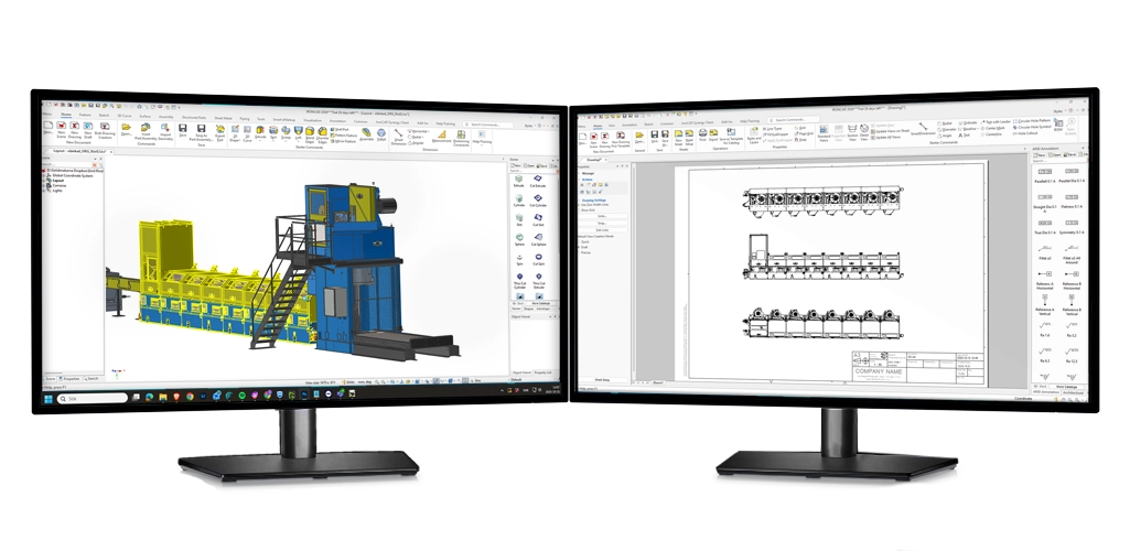 IronCAD 2026 最令人矚目的創新,是全新的多螢幕支援功能。現在,您可以將 IronCAD 的不同視窗分散到多個螢幕上,同時保持在同一個程序中運作。這意味著您可以在一個螢幕上編輯 3D 模型,變更會即時更新到另一個螢幕上的 2D 工程圖。這項突破性功能讓設計師能夠更靈活地配置工作空間,大幅提升多工處理效率,特別適合需要同時檢視模型與圖面的複雜專案。